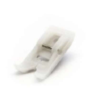 Pé calcador de téflon que permite coser couro, telas vinílicas, telas engomadas (cortinas de banho), camurças (parcas), etc.