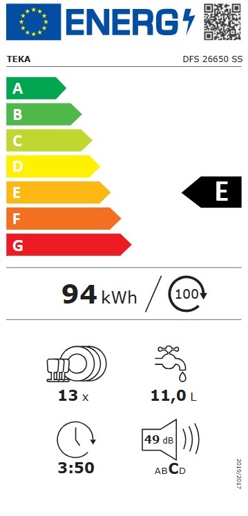 Consumo energético/100 ciclos (programa Eco): 94 kWh