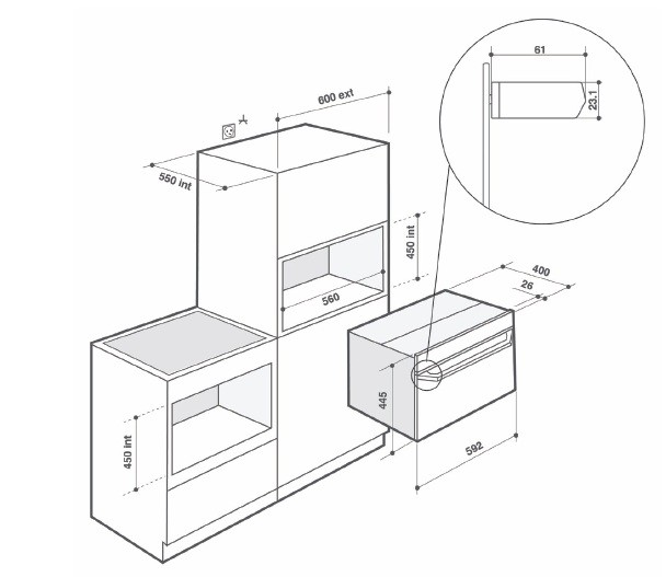 Encastre (mm): A 450 x L 560 x P 550