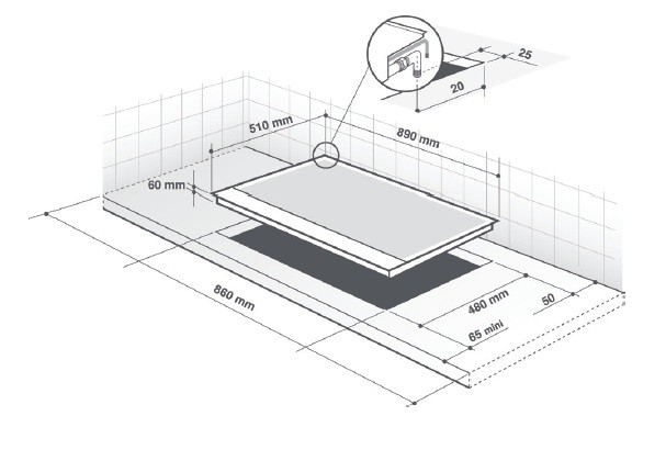 Encastre (mm): L 860 x P 480