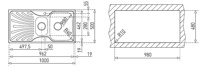 Medidas exteriores (mm): L 1000 x P 500